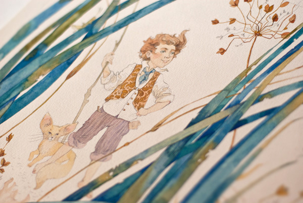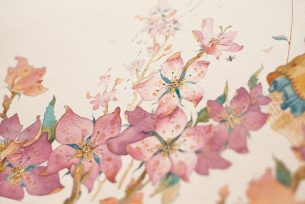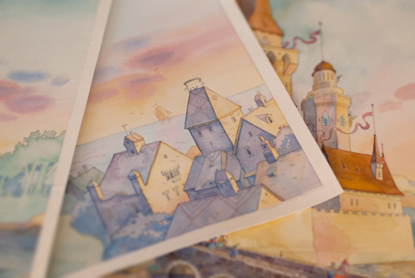 The artworks were done with traditional materials — pencil and watercolor on paper.
